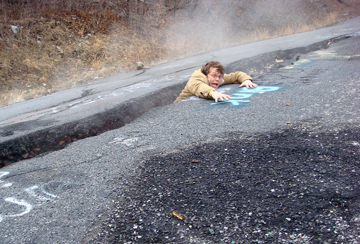 In reality, one could more easily argue that Centralia is a sad, eerie place. Evidence of the mine fire that doomed the town is everywhere, as are the reminders of the people who once lived there. Perhaps these things create an uneasy feeling that is best channeled through weirdness.